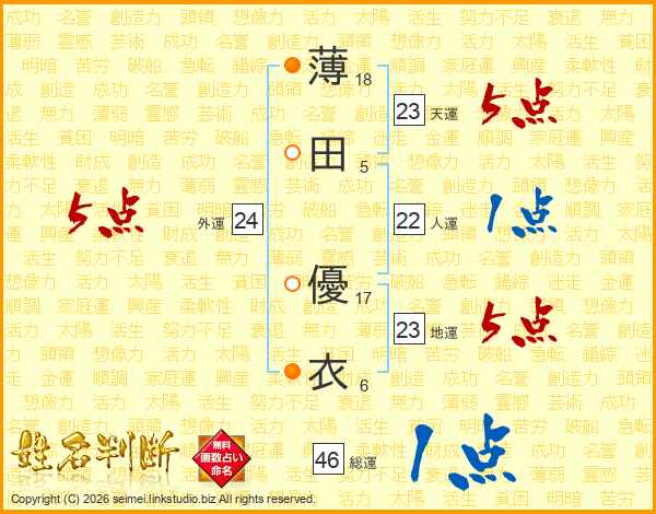 薄田優衣さんの天運は23画の5点!