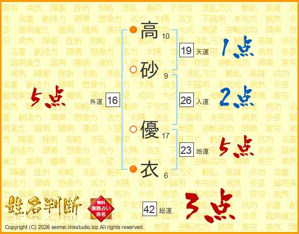 高砂優衣さんの人運は26画の2点!