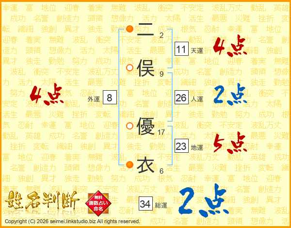 二俣優衣さんの天運は11画の4点!