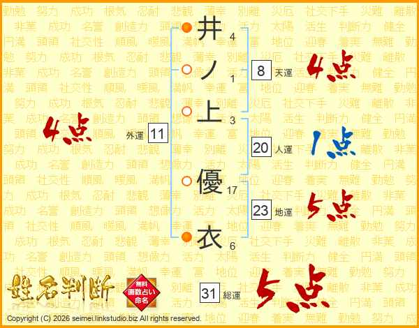 井ノ上優衣さんの総運は31画の5点!