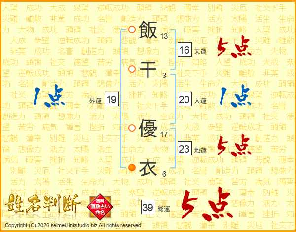 飯干優衣さんの総運は39画の5点!