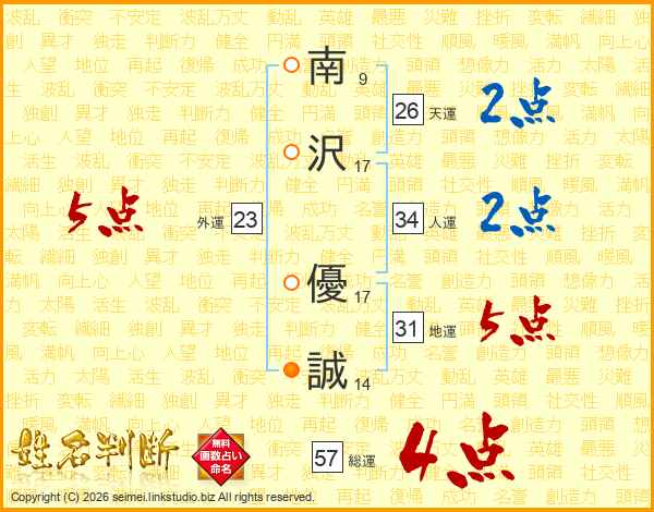 南沢優誠さんの総運は57画の4点!