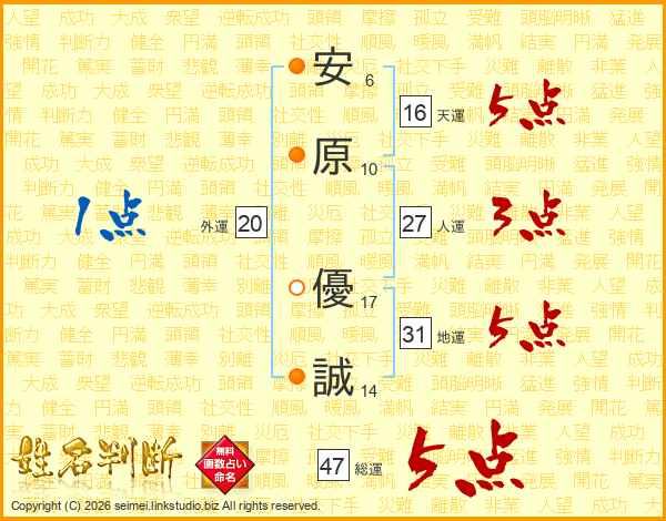 安原優誠さんの総運は47画の5点!