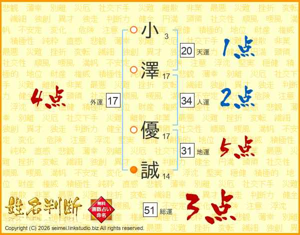 小澤優誠さんの総運は51画の3点!