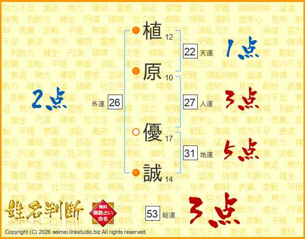 植原優誠さんの総運は53画の3点!