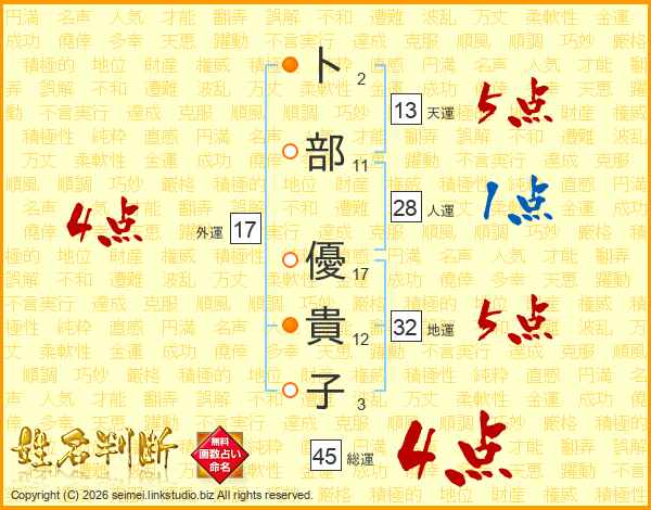 卜部優貴子さんの総運は45画の4点!