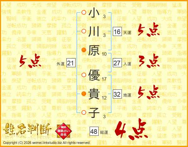小川原優貴子さんの外運は21画の5点!