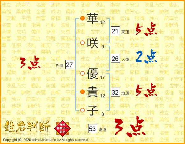 華咲優貴子さんの総運は53画の3点!