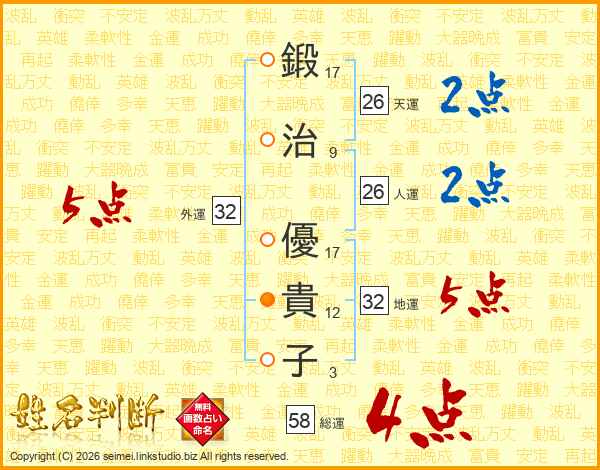 鍛治優貴子さんの総運は58画の4点!
