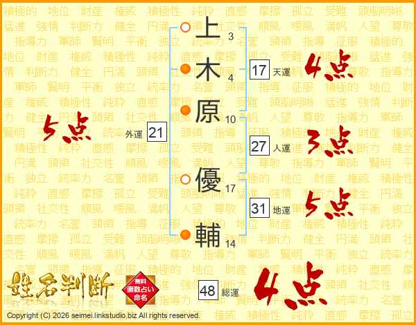 上木原優輔さんの総運は48画の4点!