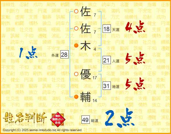 佐(7画)佐(7画)木(4画) 優(17画)輔(14画)