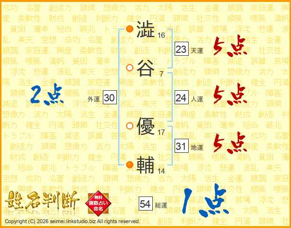 澁谷優輔さんの総運は54画の1点!