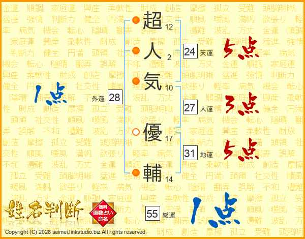 超人気優輔さんの天運は24画の5点!