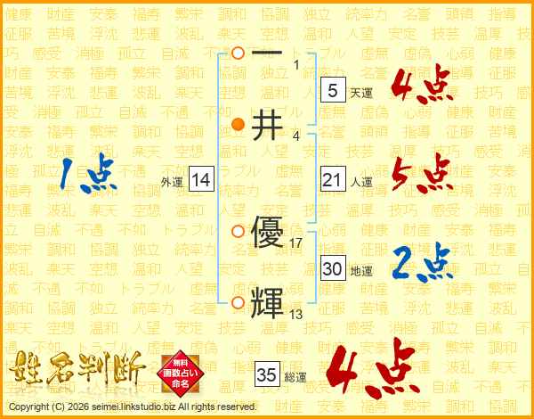 一(1画)井(4画) 優(17画)輝(13画)