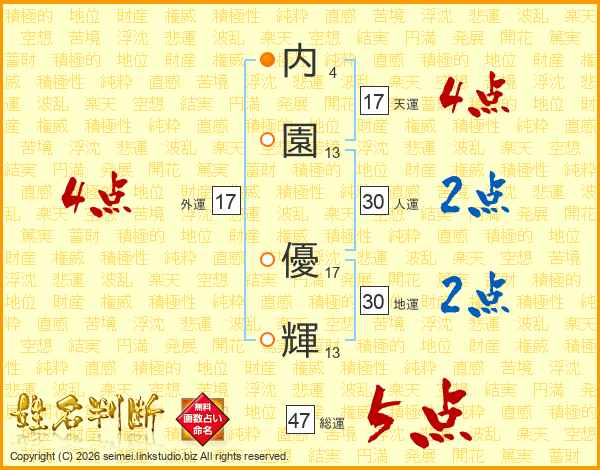 内園優輝さんの総運は47画の5点!