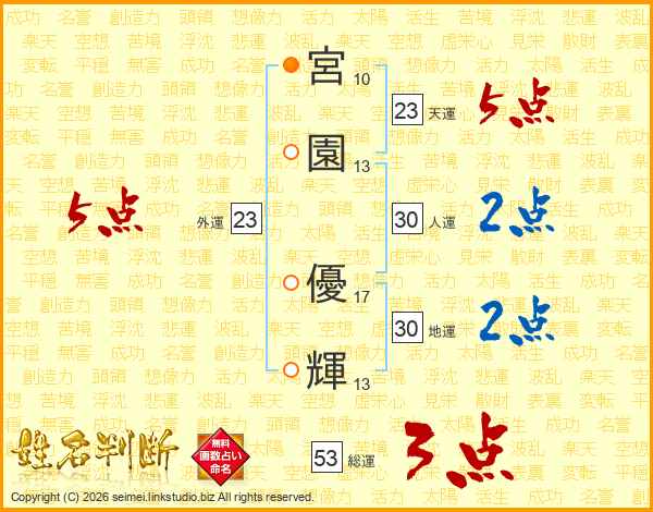 宮園優輝さんの総運は53画の3点!