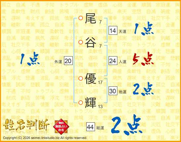 尾谷優輝さんの人運は24画の5点!