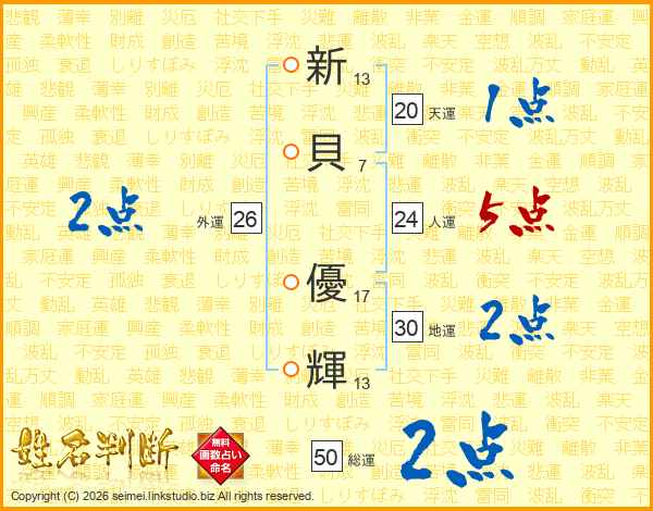 新貝優輝さんの地運は30画の2点!