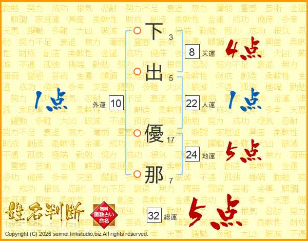 下出優那さんの総運は32画の5点!