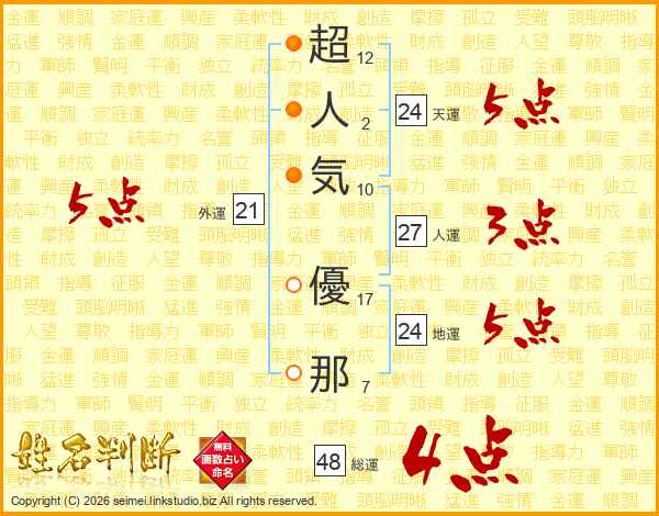 超人気優那さんの総運は48画の4点!