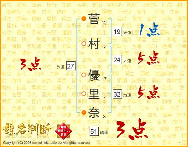 菅村優里奈さんの人運は24画の5点!