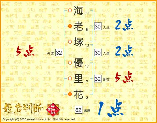 海老塚優里花さんの外運は32画の5点!