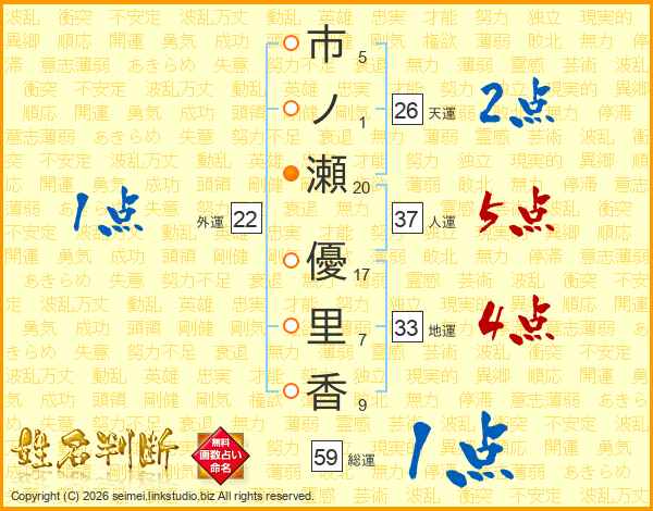 市ノ瀬優里香さんの総運は59画の1点!