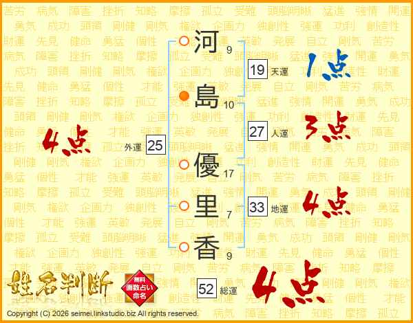 河島優里香さんの総運は52画の4点!