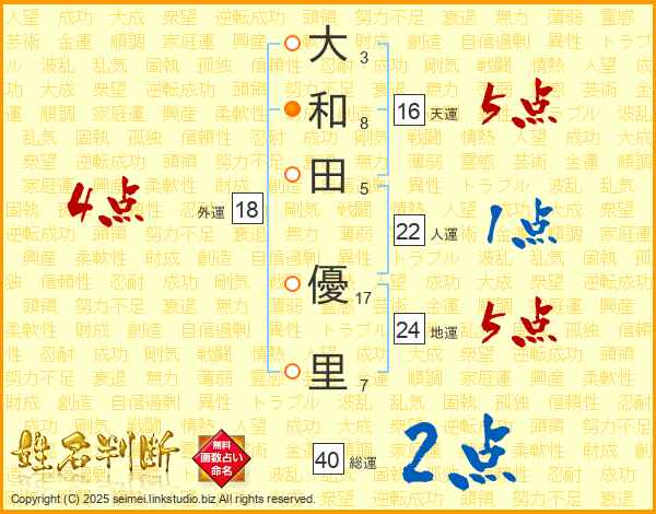 大和田優里さんの地運は24画の5点!