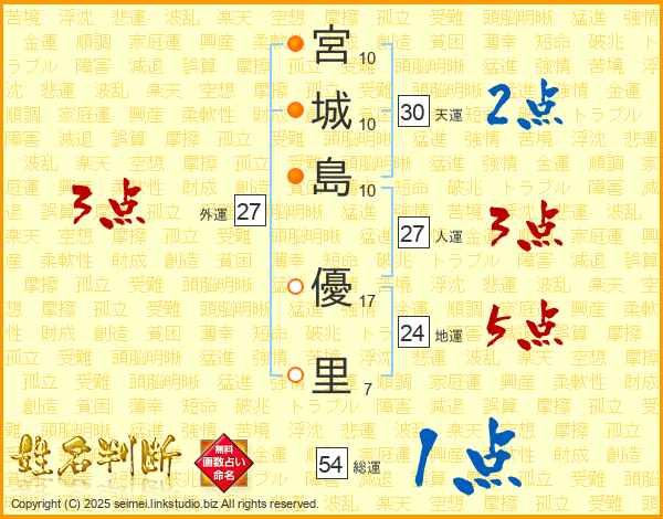 宮城島優里さんの総運は54画の1点!