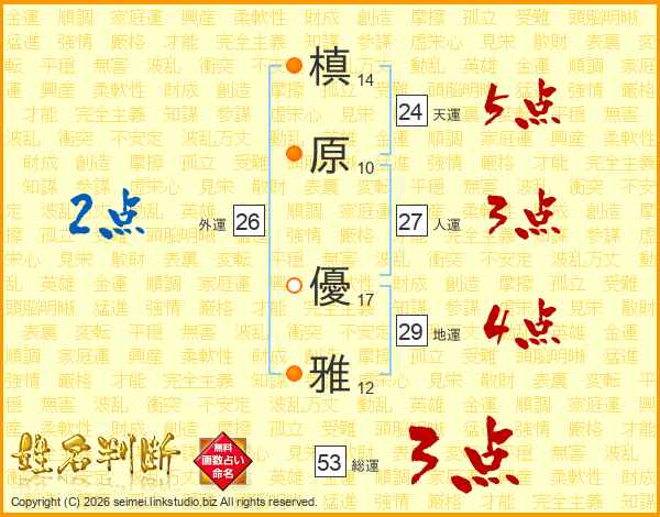 槙原優雅さんの総運は53画の3点!