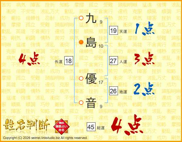 九島優音さんの総運は45画の4点!