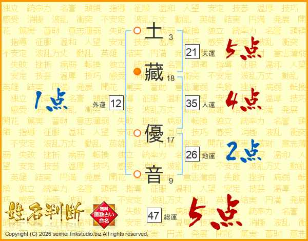 土藏優音さんの天運は21画の5点!