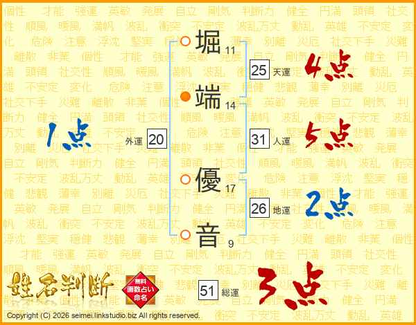 堀端優音さんの地運は26画の2点!