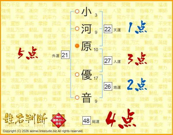 小河原優音さんの総運は48画の4点!