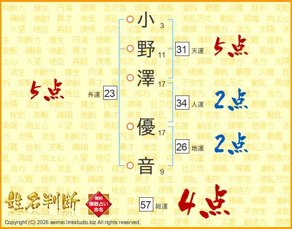 小野澤優音さんの総運は57画の4点!