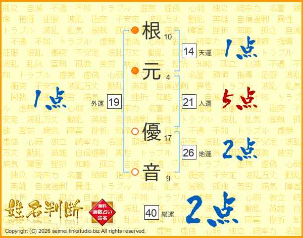 根元優音さんの地運は26画の2点!