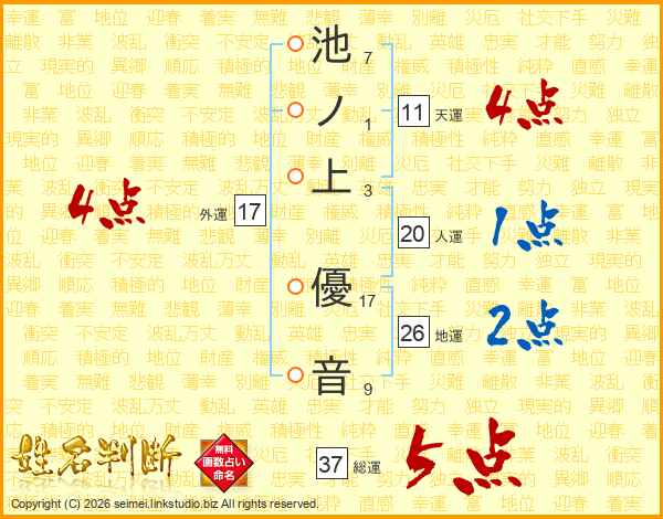 池ノ上優音さんの天運は11画の4点!