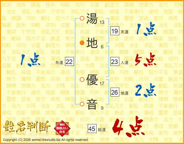 湯地優音さんの総運は45画の4点!