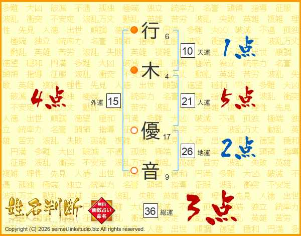 行木優音さんの地運は26画の2点!