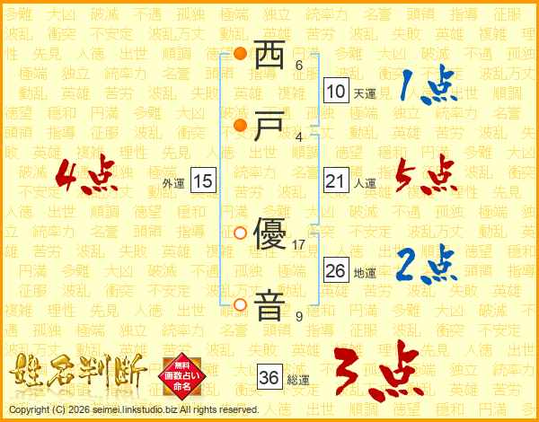 西戸優音さんの地運は26画の2点!