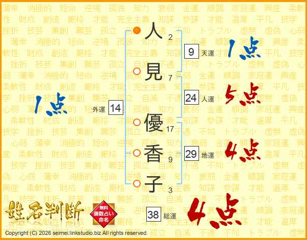 人見優香子さんの総運は38画の4点!
