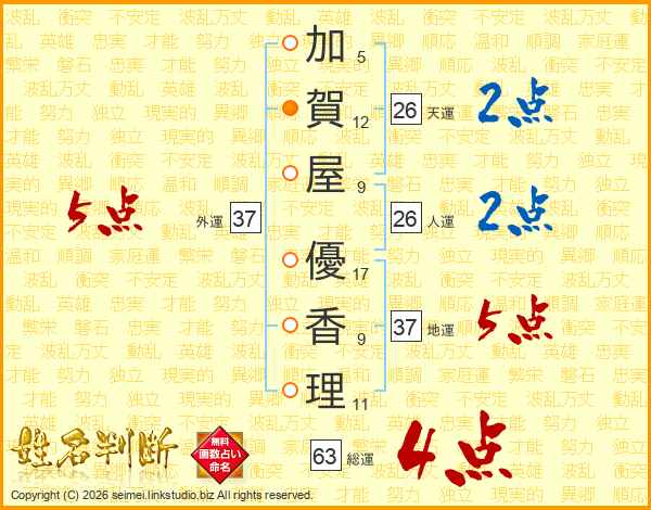 加賀屋優香理さんの総運は63画の4点!