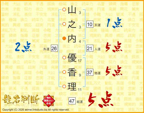 山之内優香理さんの総運は47画の5点!