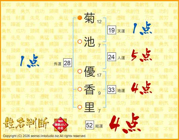 菊池優香里さんの総運は52画の4点!