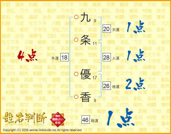 九条優香さんの外運は18画の4点!