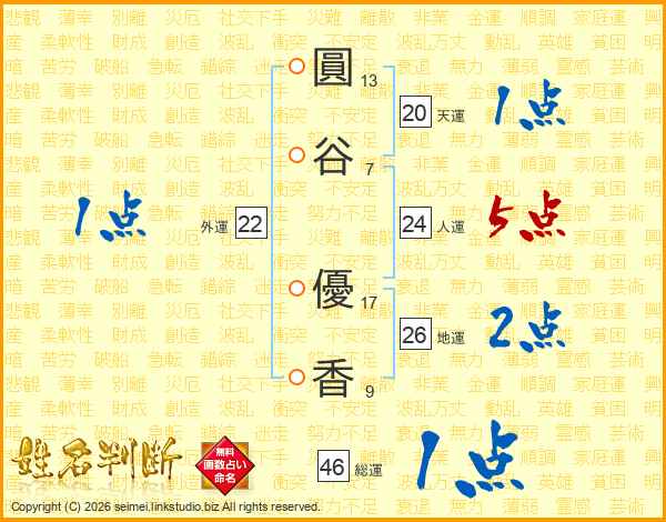 圓谷優香さんの総運は46画の1点!