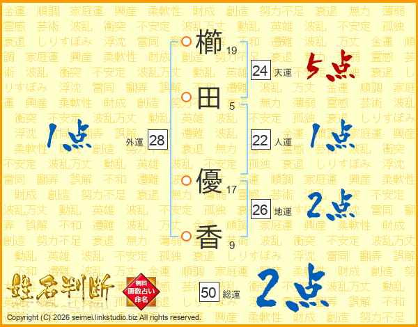 櫛田優香さんの総運は50画の2点!