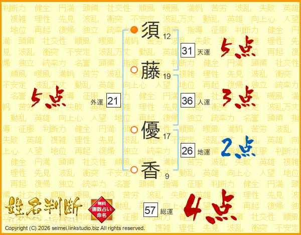 須(12画)藤(19画) 優(17画)香(9画)