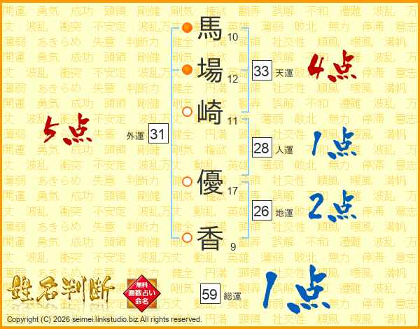 馬場崎優香さんの天運は33画の4点!